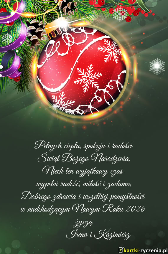 Życzymy Wam zdrowych, radosnych, pełnych miłości rodzinnego ciepła Świąt Bożego Narodzenia - Gotowa Kartka bożonarodzeniowa