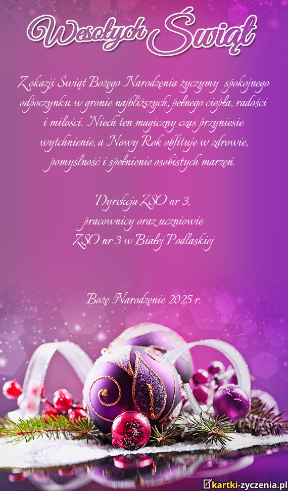 Z okazji Świąt Bożego Narodzenia życzymy spokojnego odpoczynku w gronie najbliższych, pełnego
