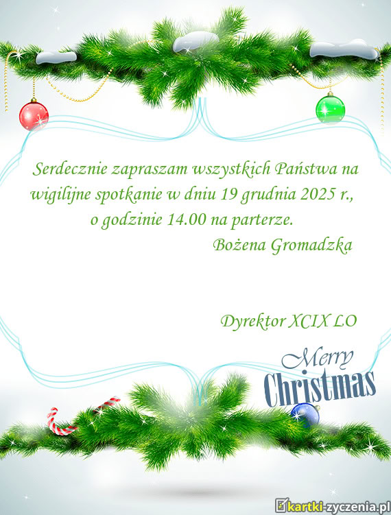 Serdecznie zapraszam wszystkich Państwa na wigilijne spotkanie w dniu 19 grudnia 2025 r., o godzi